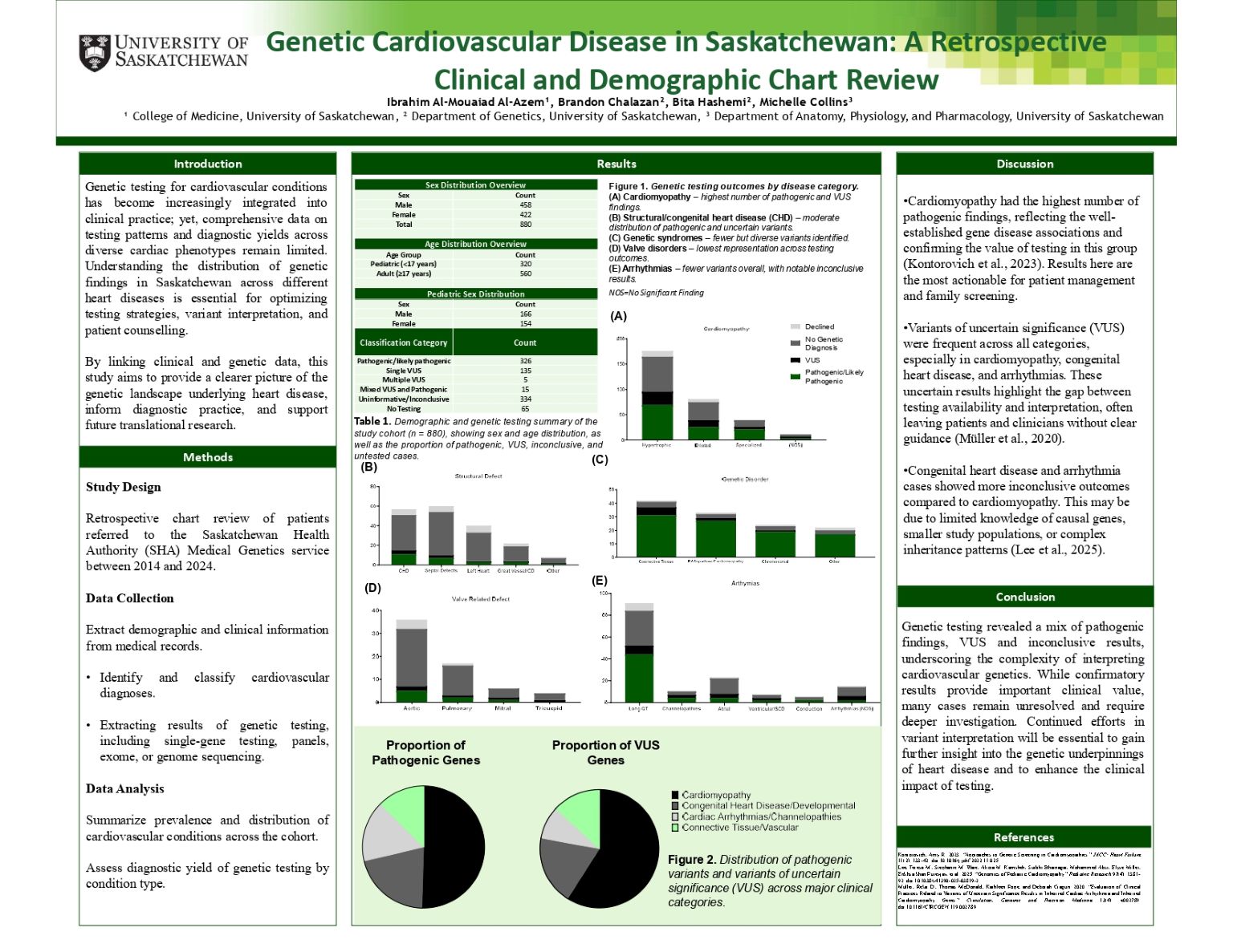 We performed a retrospective chart review of patients referred to the Saskatchewan Health Authority (SHA) Medical Genetics service between 2014-2024. Where we identified patients that were referred to due to a cardiovascular diagnosis. At which point retrieved relevant information such as the cardiac diagnosis and genetic testing results. From there we were able to analyze the prevalence and distribution of cardiovascular conditions across the cohort.
